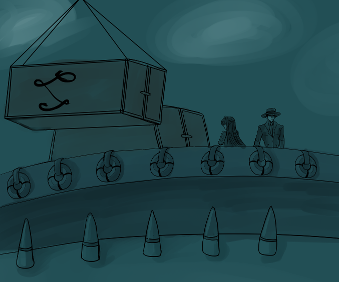 > There are guys in suit loading containers onto the ship